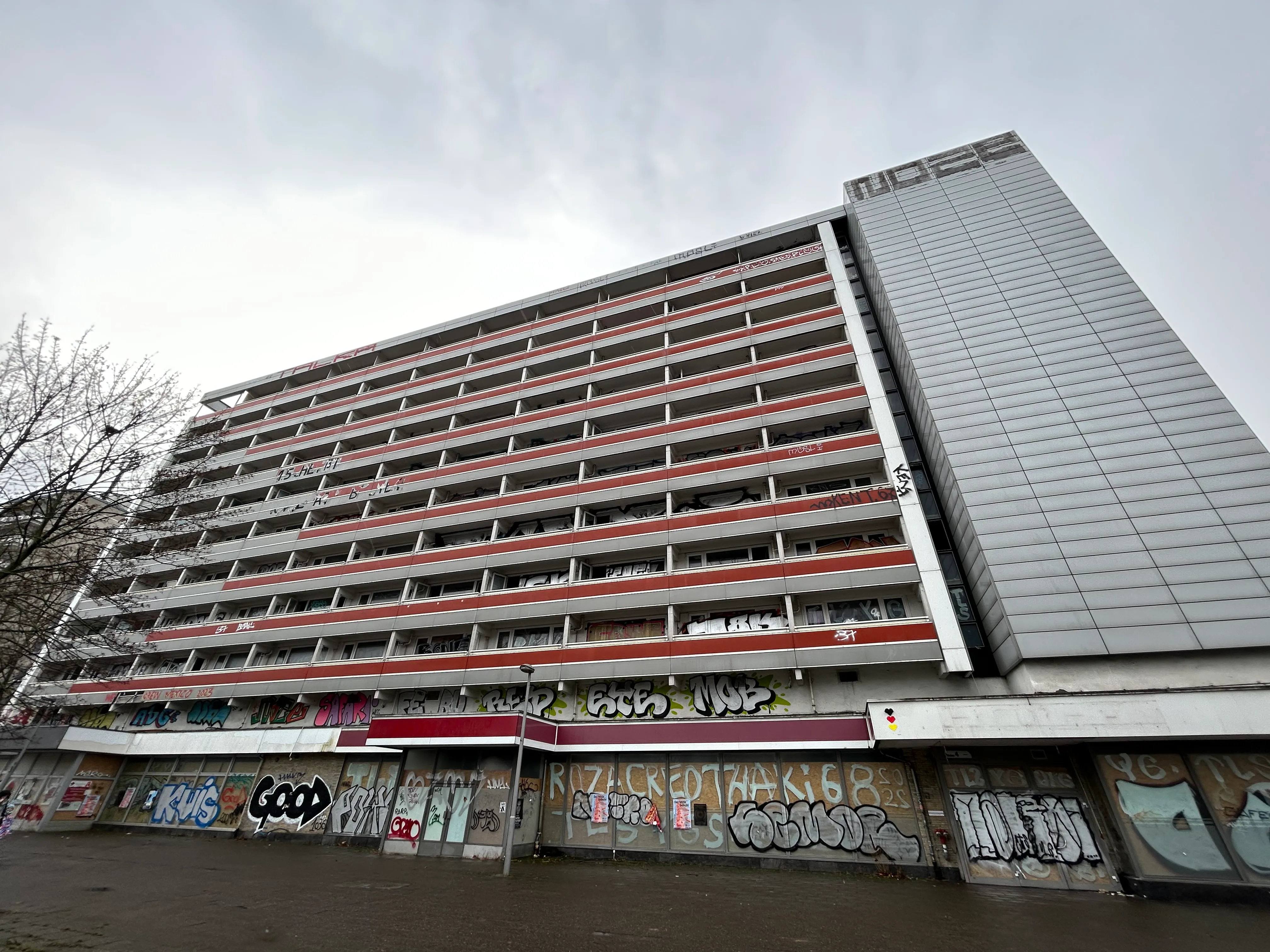 Im Jahr 2019 stellte das im Gebäude ansässige Hotel seinen Betrieb ein. Es folgten sechs Jahre des Leerstands. Die Berliner Stadtpolitik setzte sich in dieser Zeit für eine aufwendige Sanierung des mit Asbest belasteten Gebäudes ein – ganz ähnlich wie beim benachbarten „Haus der Statistik“. Der Eigentümer jedoch verfolgte andere Pläne, was zu einem langwierigen Konflikt führte.